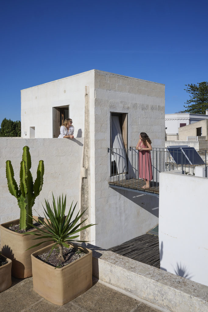 A la croisée des mers Adriatique et Tyrrhénniene, au fin fond de l’Italie, le village de Castrignano del Capo est la commune la plus méridionale des Pouilles, située à quelques kilomètres seulement de la pointe du talon de la botte. Au centre de ce village de 5000 âmes dans la province de Lecce se niche cette grande maison d’architecte. Créé à partir de plusieurs petites unités d’habitation qui hébergeaient probablement une communauté unie par des liens de parenté, l’ensemble conserve les éléments d’origine du hameau datant du XIXe siècle. Les unités individuelles indépendantes ont été transformées et regroupées pour devenir une unique grande maison familiale. Outre la rénovation des modules anciens, de nouveaux éléments ont été construits pour compléter la structure originelle. Parfaitement intégrés, le neuf et l’ancien se fondent harmonieusement grâce au travail respectueux d’Isabelle Valazza Vallet, architecte installée à Lausanne et auteur du projet complet de rénovation et restructuration.